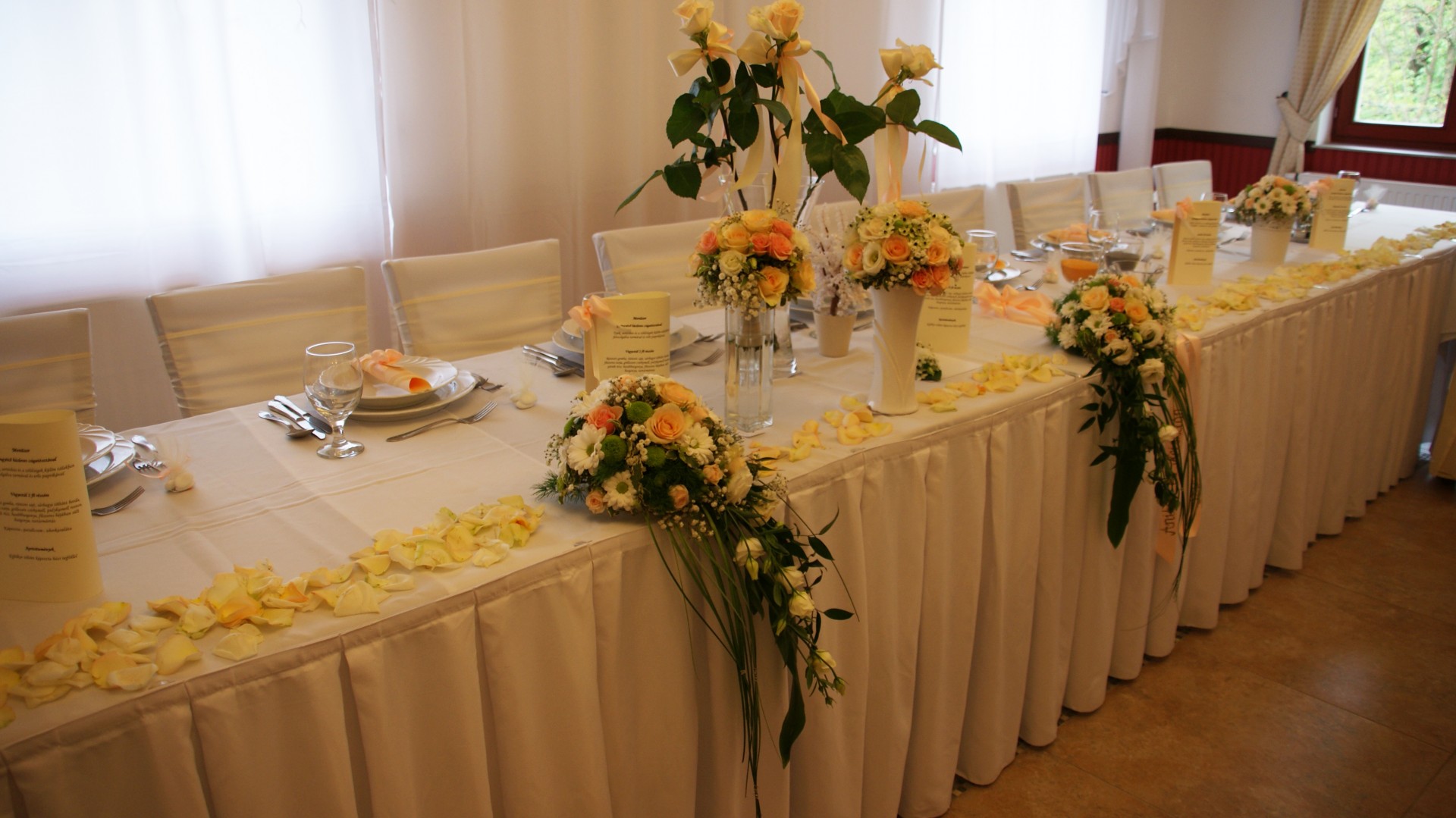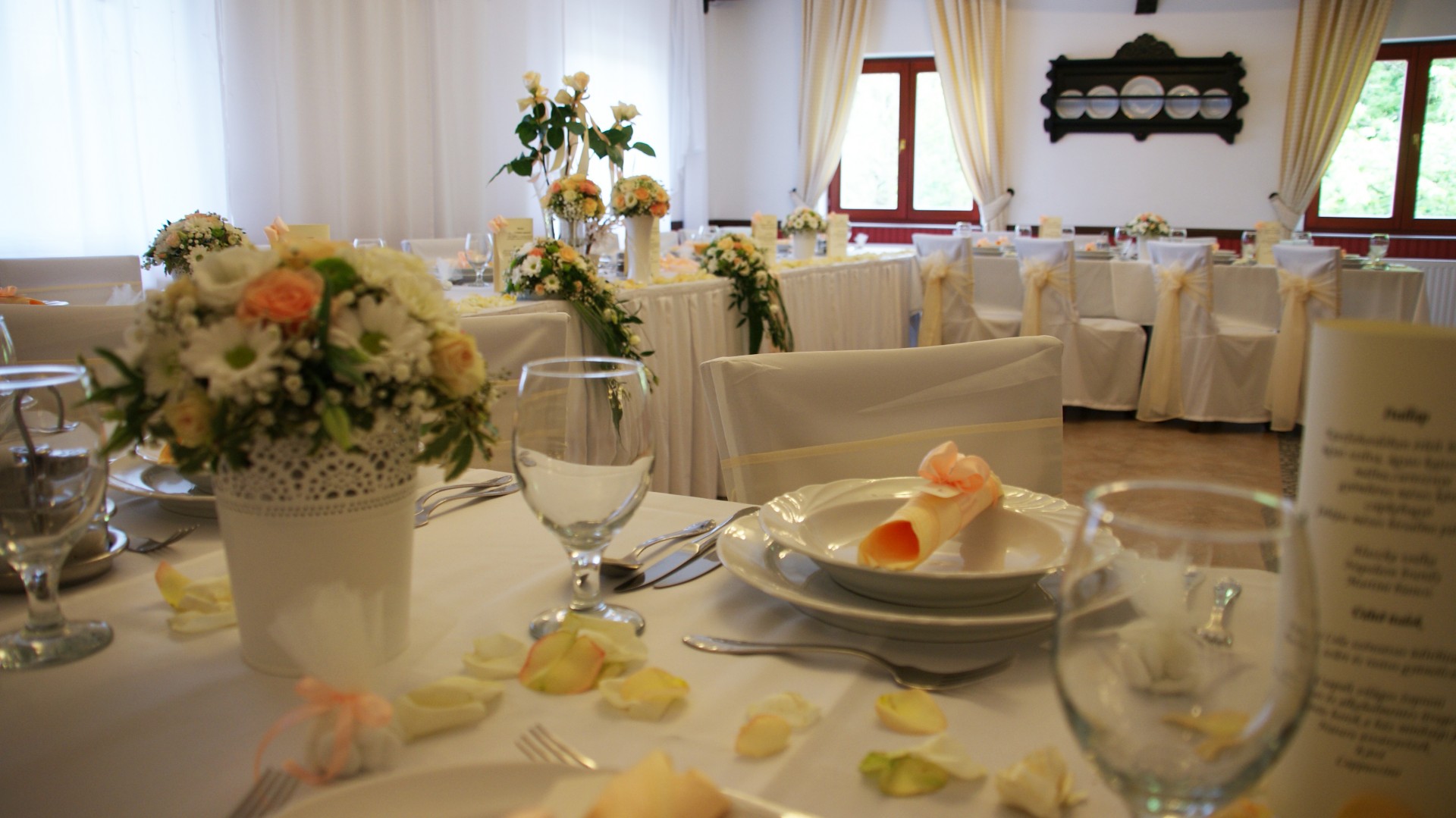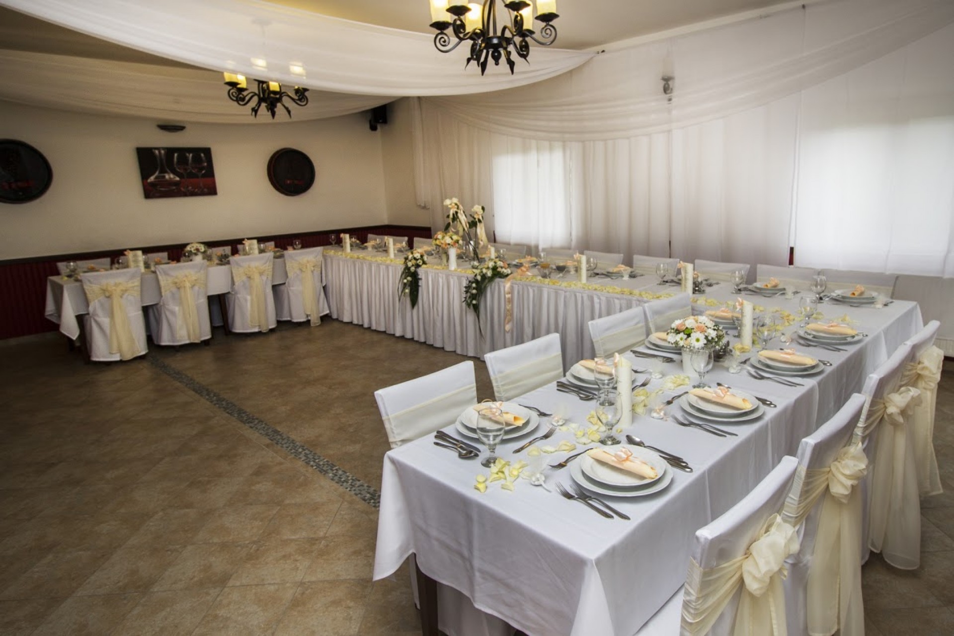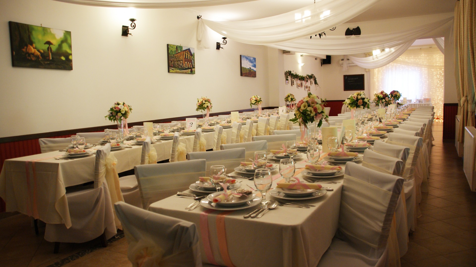 Fehér - krémszínű dekoráció az étteremben pasztell színekkel