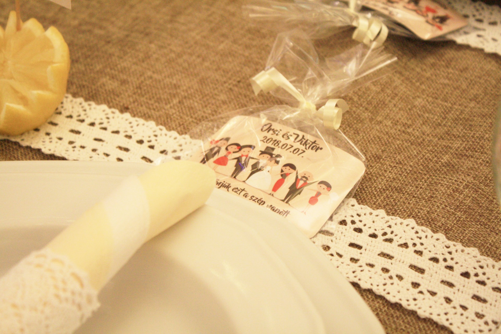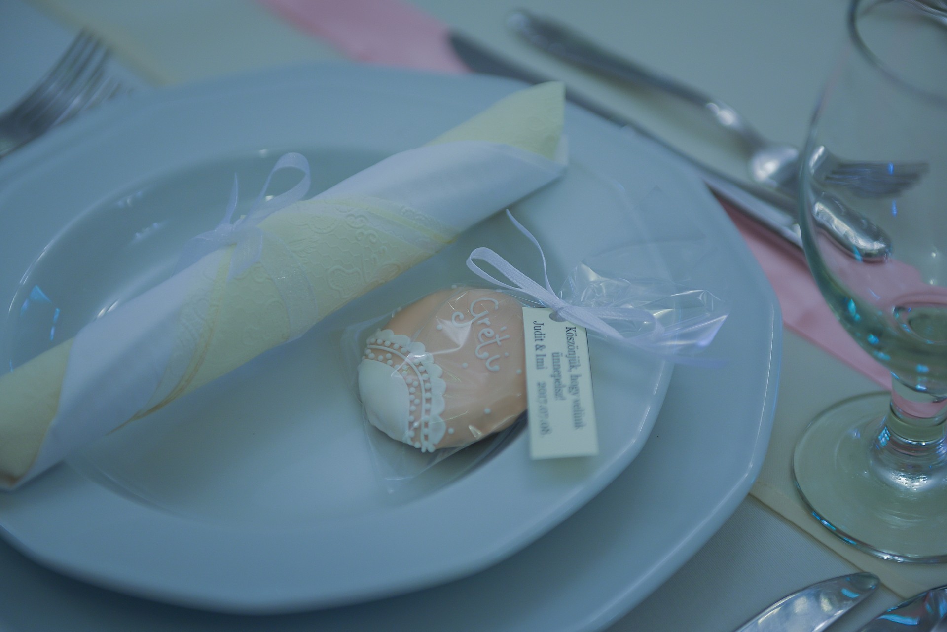 Hengerbe hajtott szalvéta és mézeskalács köszönőajándék -