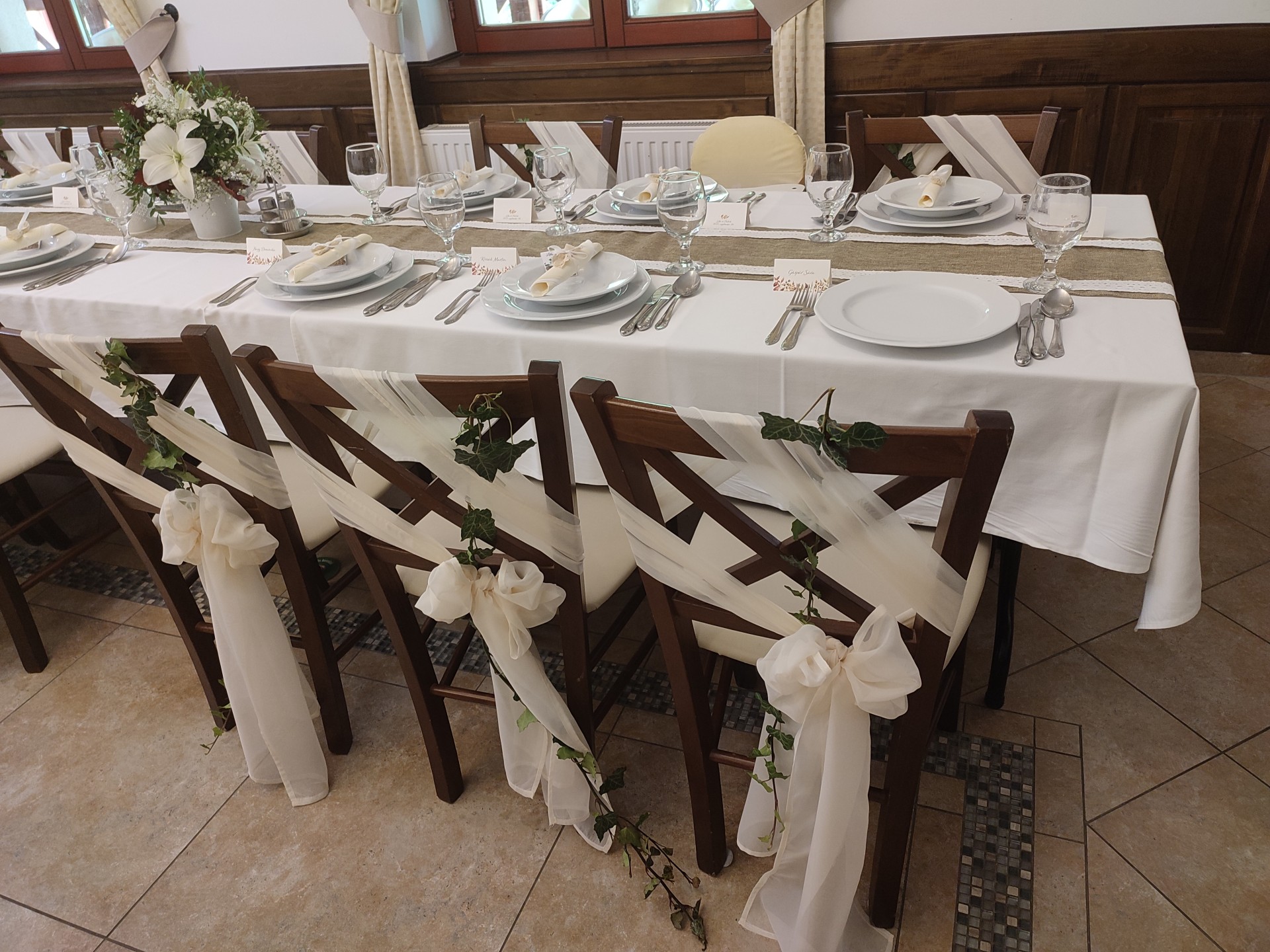U-alakú főasztal az étterem végében