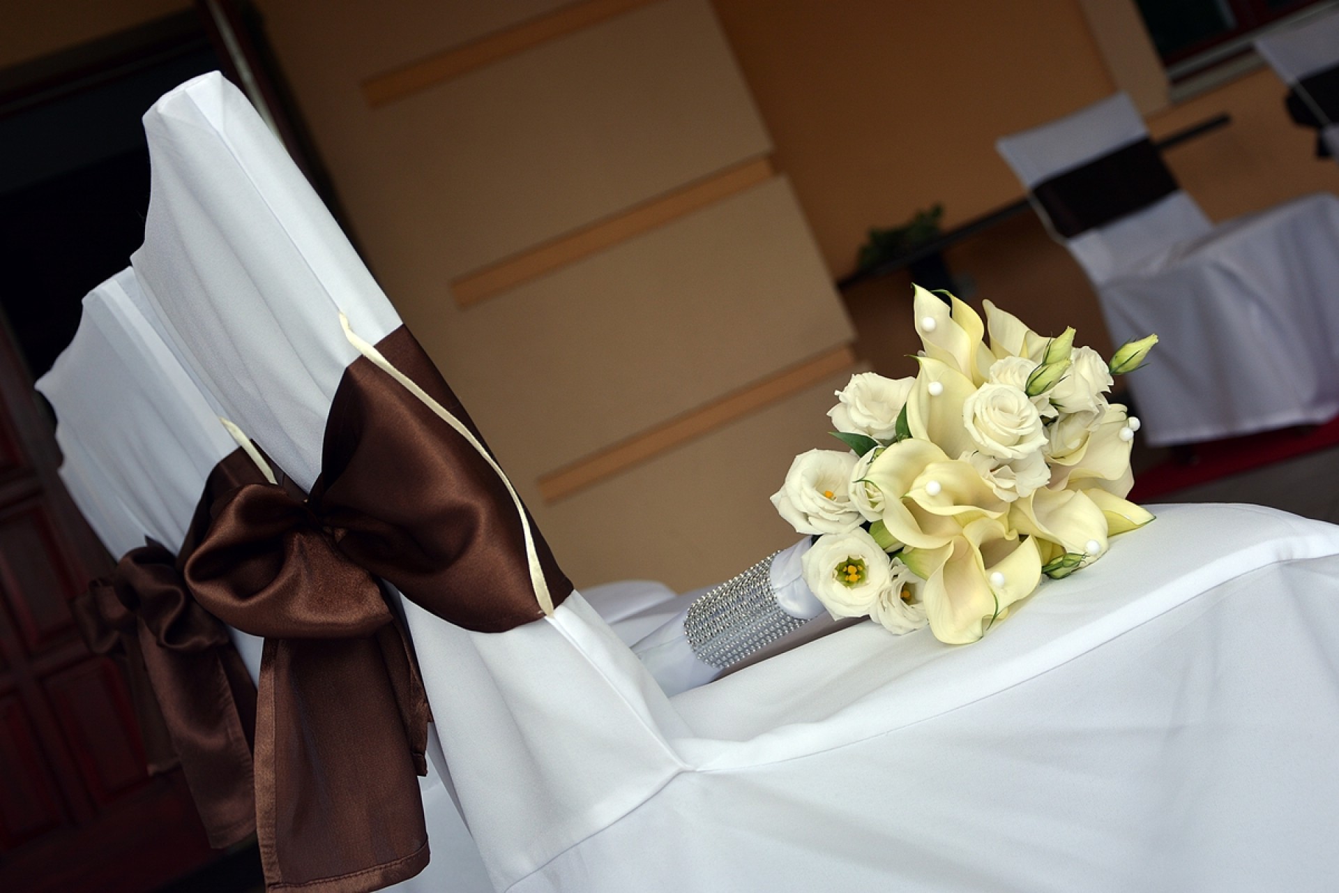 Barna - fehér színű dekoráció főasztala